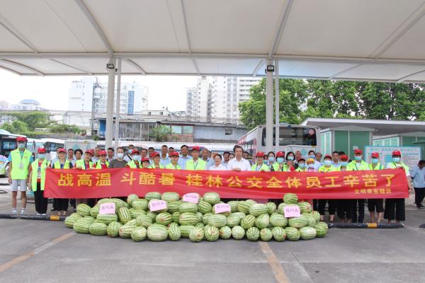 “各人辛勤了,,,这是我们文明旅客的一点心意。。。。 。”8月5日,,,近20位文明旅客自觉购置了一批新鲜西瓜送到公交驾驶员们手中,,,给坚守在一线的驾驶员们送上了丝丝清凉。。。。 。