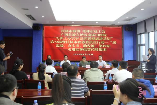 5月24日,,由桂林市政协、桂林市总工会、广西壮族自治区南溪山医院联合开展的“为职工办实事·送医送康健进下层”第72站暨桂林市政协委员在行动——“送温暖、办实事、助生长”第47场运动走进集团公司,,集团公司工会组织员工百余人加入运动。。。。。