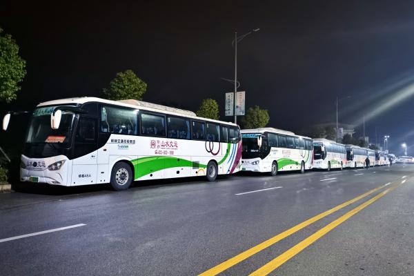 为包管运动加入职员有序抵达、疏散,,,阳朔山水交运公司投入30台新能源大巴车车,,,为寓目渔火节晚会的游客和市民提供免费出行效劳,,,确保渔火节运维事情有序开展,,,助力游客和市民出行清静。。。(阳朔山水交运 周诗贤 韦明辉)