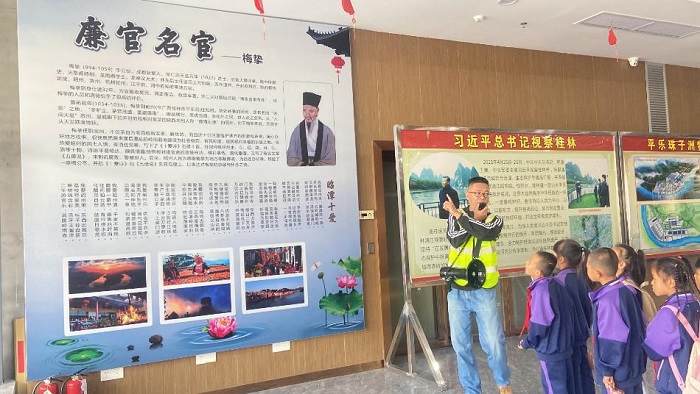 “梅挚是宋代清廉官员规范,,,他严于律己、清廉为官……”在平乐弘润印山码头研学营地,,,加入研学的学生们津津有味地聆听弘润公司研学导师讲述的历史人物清廉故事。。 。。